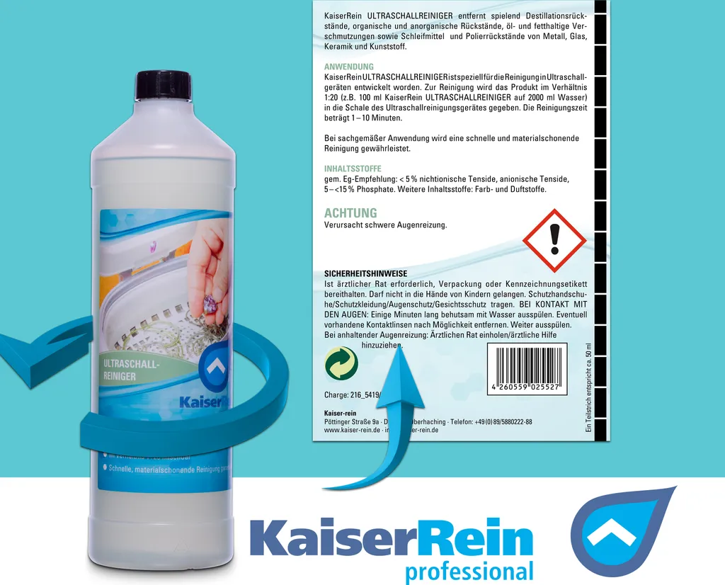 KaiserRein Ultraschallreiniger Konzentrat Flüssig 2×1 L Ultraschall Reinigungsmittel Reiniger Für Ultraschallgerät Zur Profi Reinigung Von Schmuck, Brillen